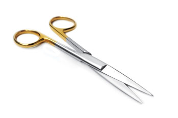 Scissors are used for cutting tissue, suture, or for dissection. Scissors can be straight or curved and may be used for cutting heavy or finer structures. Some of the variants of scissors are: straight and curved Mayo Scissors, Metzenbaum Scissors, Pott’s Scissors, and Iris Scissors.